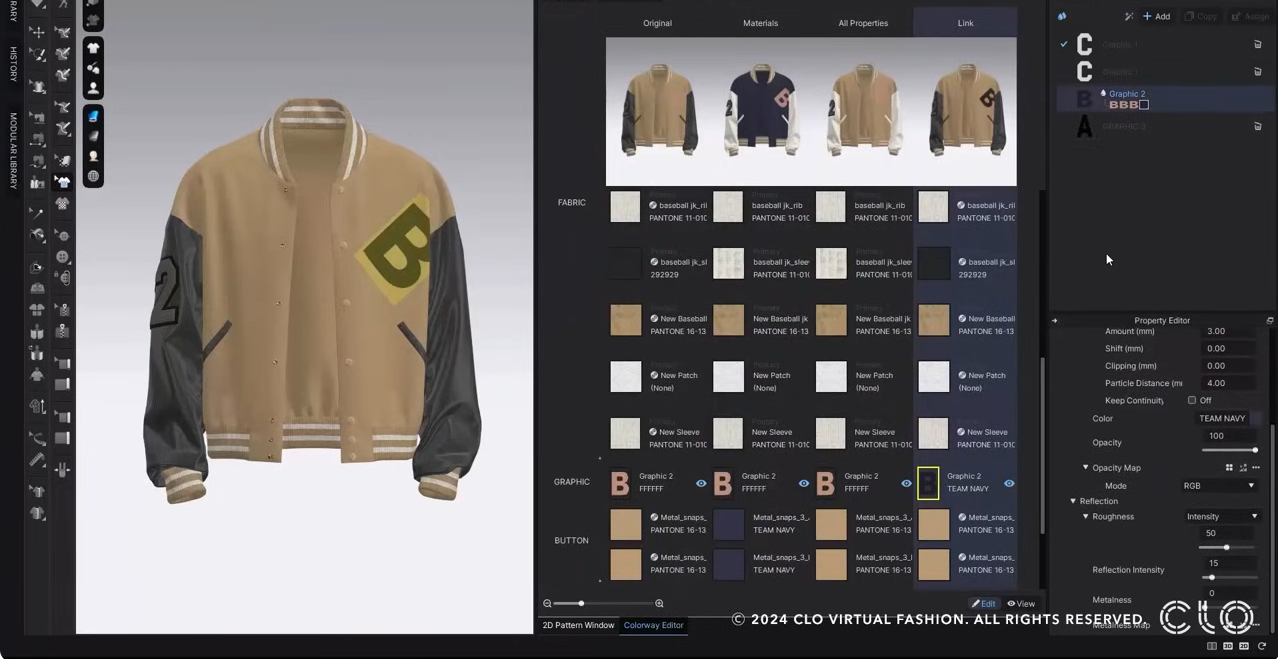 CLO는 한국에서 제작한 3D 가상 의상 시뮬레이션 소프트웨어로, 패턴 디자인과 가상 샘플링에 특화되어 있습니다. 사용하기 쉬운 인터페이스와 정확한 시뮬레이션으로 많은 디자이너들 사이에서 인기를 끌고 있습니다.